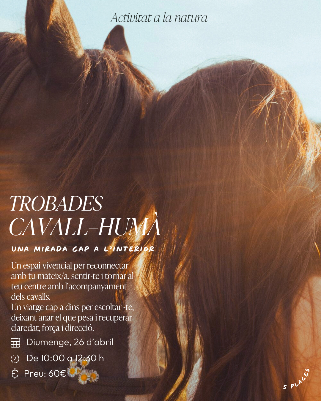 El trabajo se basa en la presencia, el respeto y la interacción consciente, sin necesidad de montar. La interacción con los caballos facilita estados de calma, atención plena y regulación del sistema nervioso.